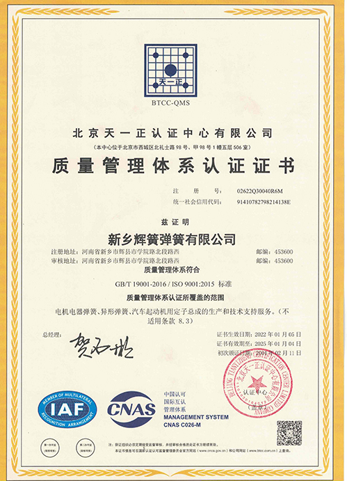 新鄉(xiāng)輝簧彈簧有限公司前身為“輝縣彈簧廠”。自1987年創(chuàng)辦以來,公司緊跟時代步伐,秉持“創(chuàng)業(yè)、創(chuàng)新、創(chuàng)造”的精神,憑借一批又一批輝簧人的不懈努力,走出了一條自主創(chuàng)新的高質(zhì)量發(fā)展之路。