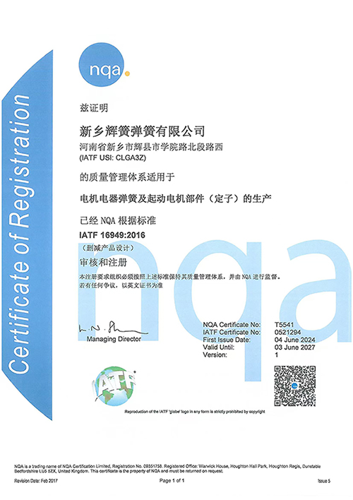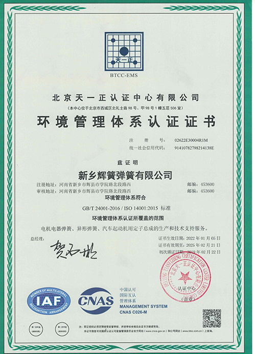 新鄉(xiāng)輝簧彈簧有限公司位于輝縣市經(jīng)濟(jì)開發(fā)區(qū),是車用電機電器彈簧和汽車起動機定子總成的制企業(yè),年生產(chǎn)能力分別為5億只和80萬套。深耕汽車電機彈簧領(lǐng)域30多年,精心制作,特色打造,形成研發(fā)、生產(chǎn)、服務(wù)集一體的一體化公司,在國內(nèi)電機彈簧行業(yè)細(xì)分領(lǐng)域市場占有率位居前位。先后被認(rèn)定為新鄉(xiāng)市智能制造示范企業(yè)、河南省知識產(chǎn)權(quán)優(yōu)勢企業(yè)、河南省創(chuàng)新型試點企業(yè)、河南省科技小巨人培育企業(yè),河南省知識產(chǎn)權(quán)優(yōu)勢企業(yè)、河南省專精特新中小企業(yè)、河南省技術(shù)創(chuàng)新示范企業(yè)、河南省“瞪羚”企業(yè)和國家企業(yè)。